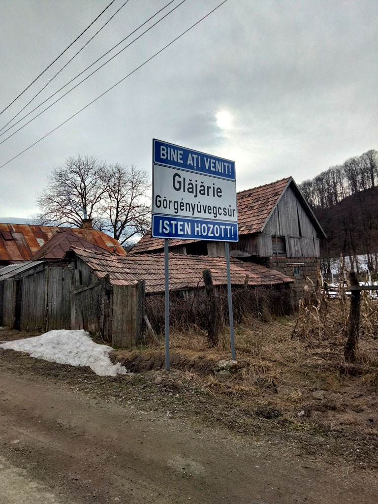 Retolació bilingüe de benvinguda a Glăjarie // C. M.