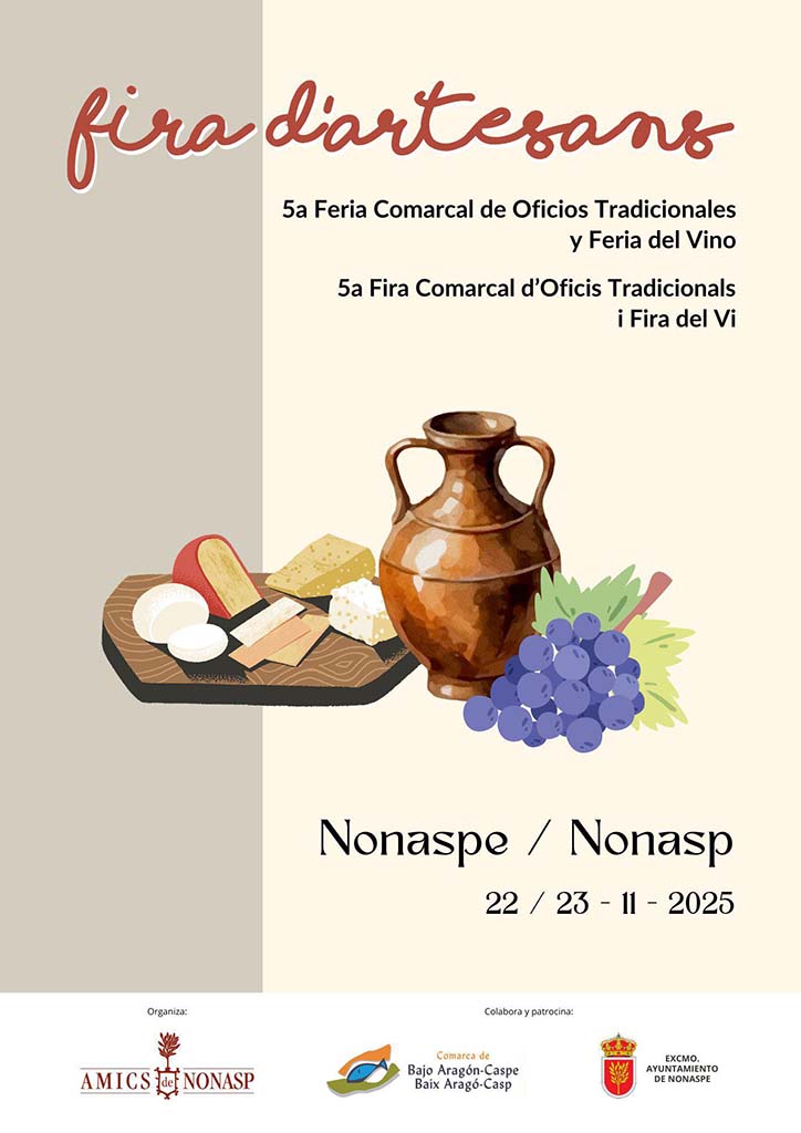 Si estau pensant què fer este cap de setmana, a Nonasp teniu un molt bon pla. Per quint any consecutiu se celebrarà la Fira d’Artesans, organitzada per l’Associació Amics de Nonasp i en la col·laboració i patrocini de la Comarca Bajo Aragón-Caspe / Baix Aragó-Casp i l’Ajuntament de Nonasp.