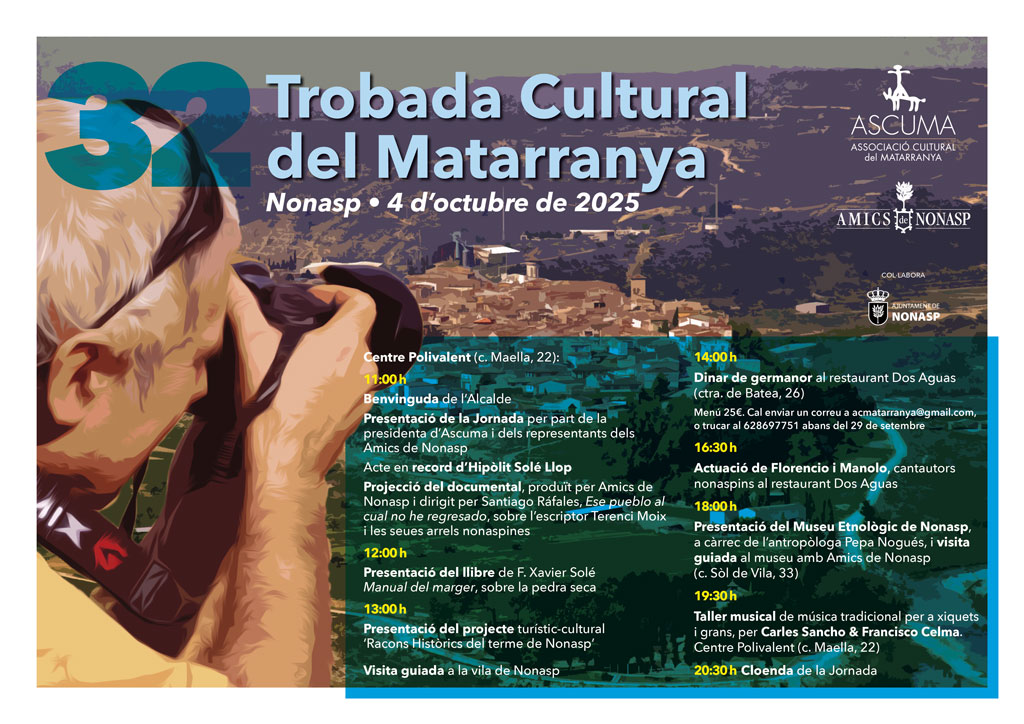 El dissabte 4 d’octubre d’enguany se celebrarà la Trobada Cultural del Matarranya a la vila de Nonasp.